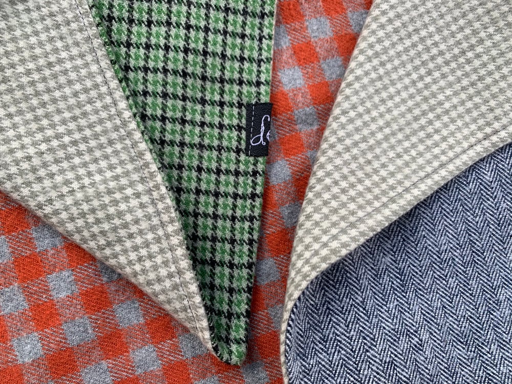 Each limited series is unique, made by hand from woven, cotton flannel. Each scarf includes a tag with the scarf name and is signed by Kelley.